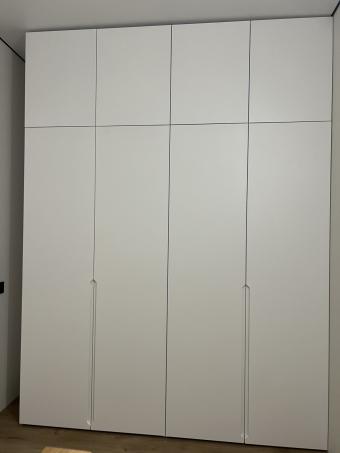 Білий варіант шафи «Неаполь» з фарбованими фасадами виглядає легко й універсально. Завдяки місткому внутрішньому наповненню вона допомагає підтримувати порядок, а світлий колір робить простір більш відкритим. Оптимальне рішення для спальні чи передпокою.